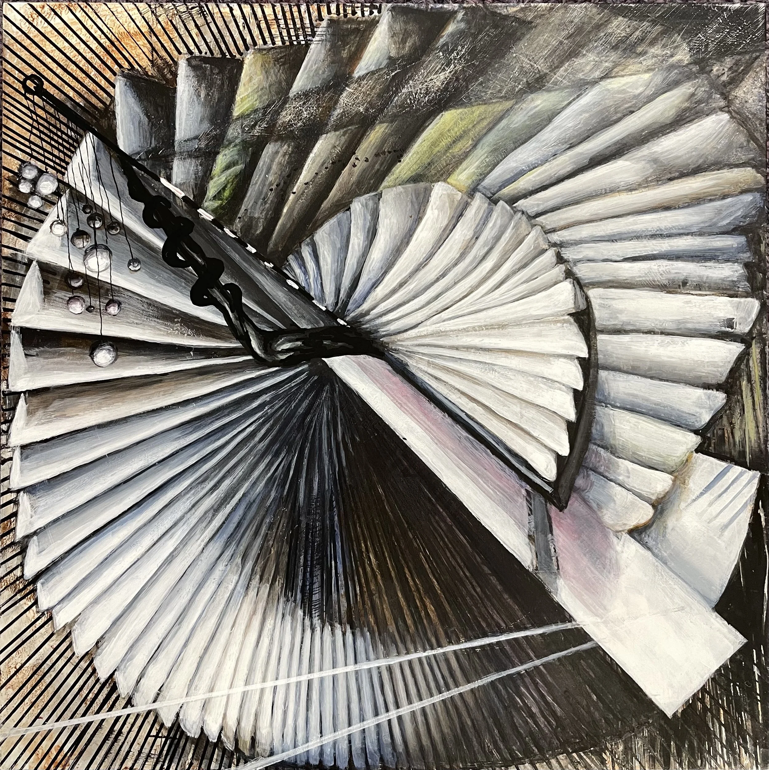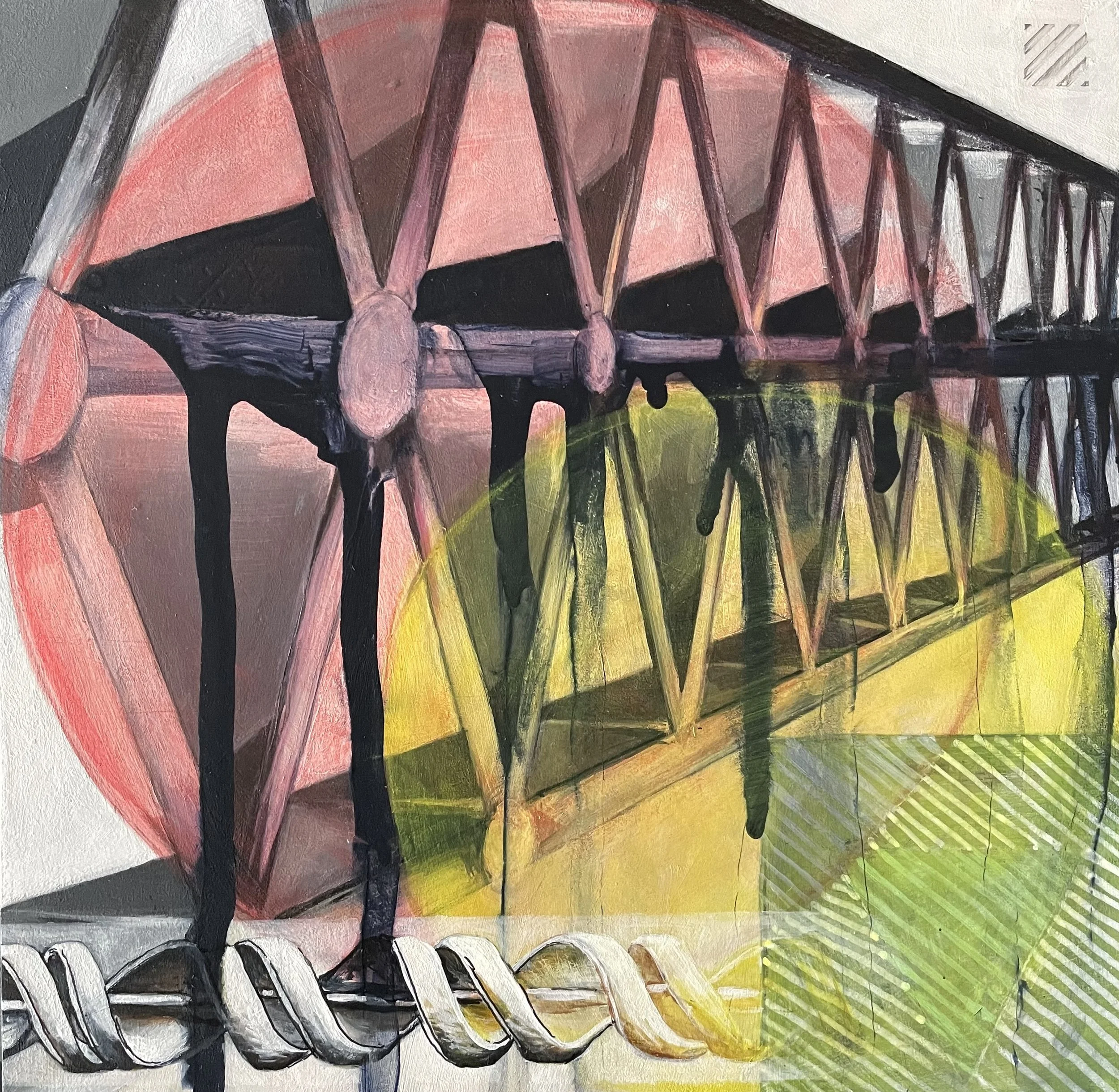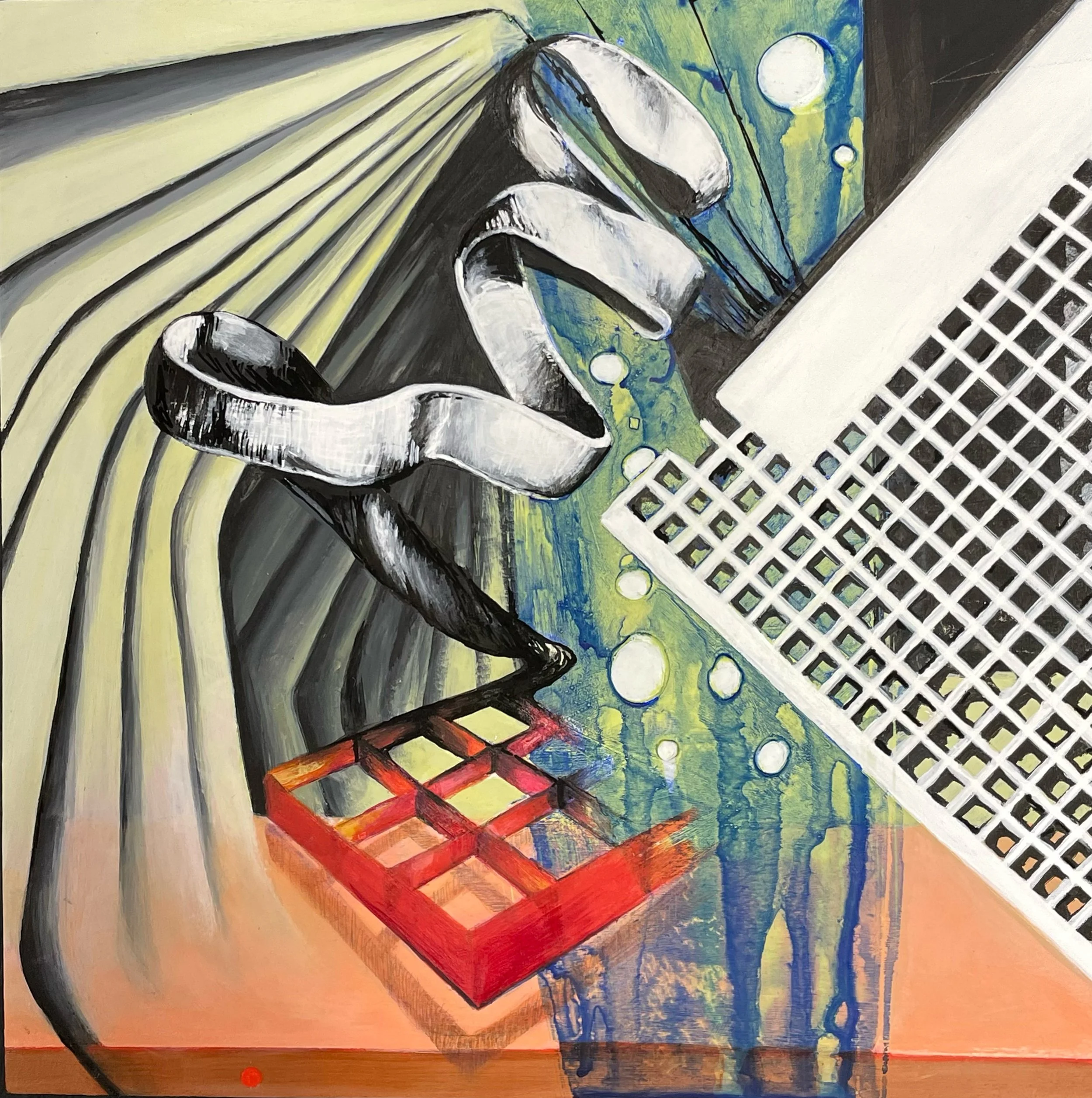 Linking Forward, 2025 (property of Cynthia Sumner/Randy Tuell). Gesso, acrylic, graphite on panel - 8x8 in.