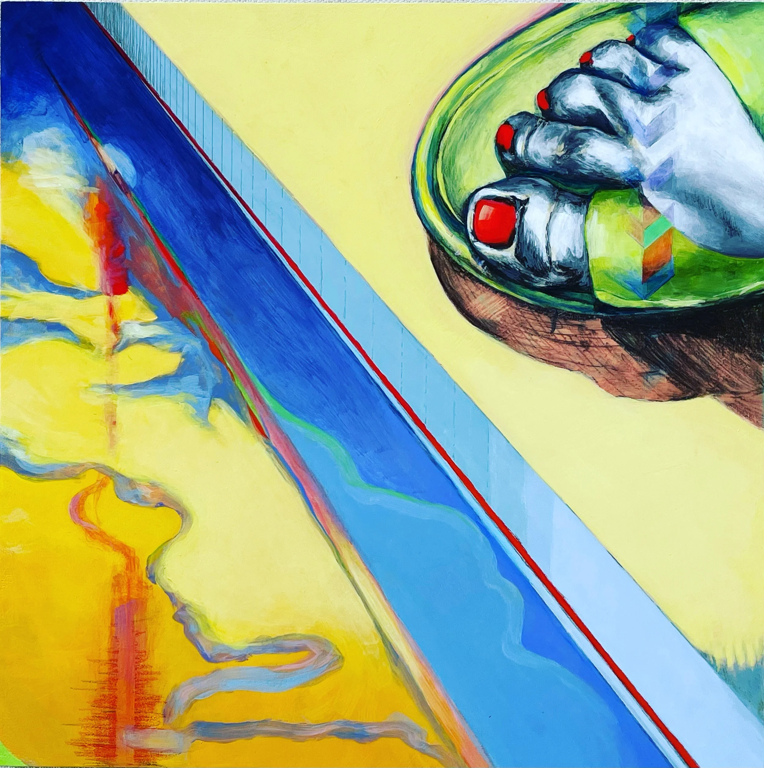 We Believed That the Fog’s Long Fingers Would Protect Us, 2023. Acrylics on panel - 5x7x1-1/2 in.