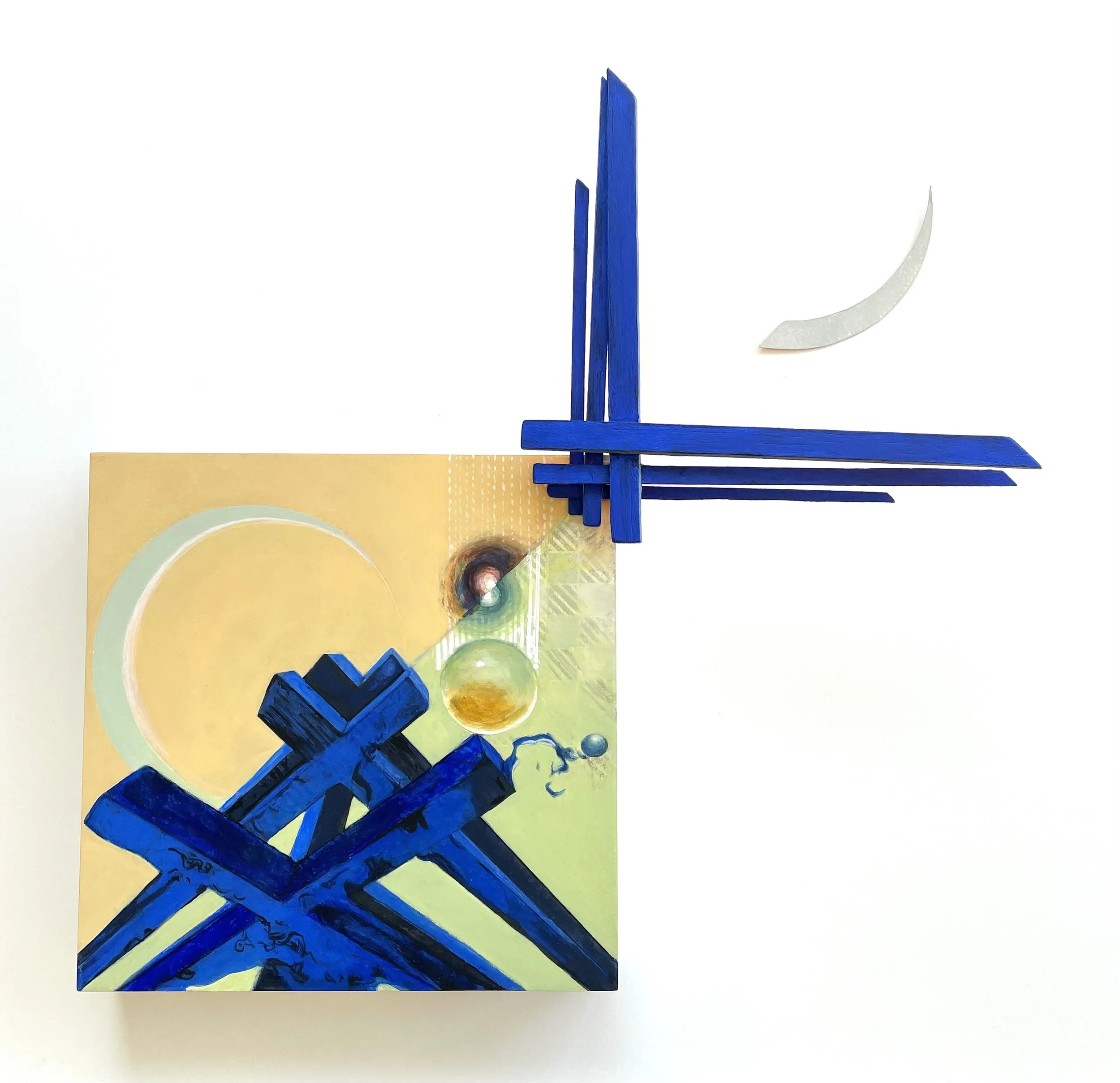 Cobalt, 2025. Gesso, acrylics, balsa wood on panel - 8x8x1-1/2 in