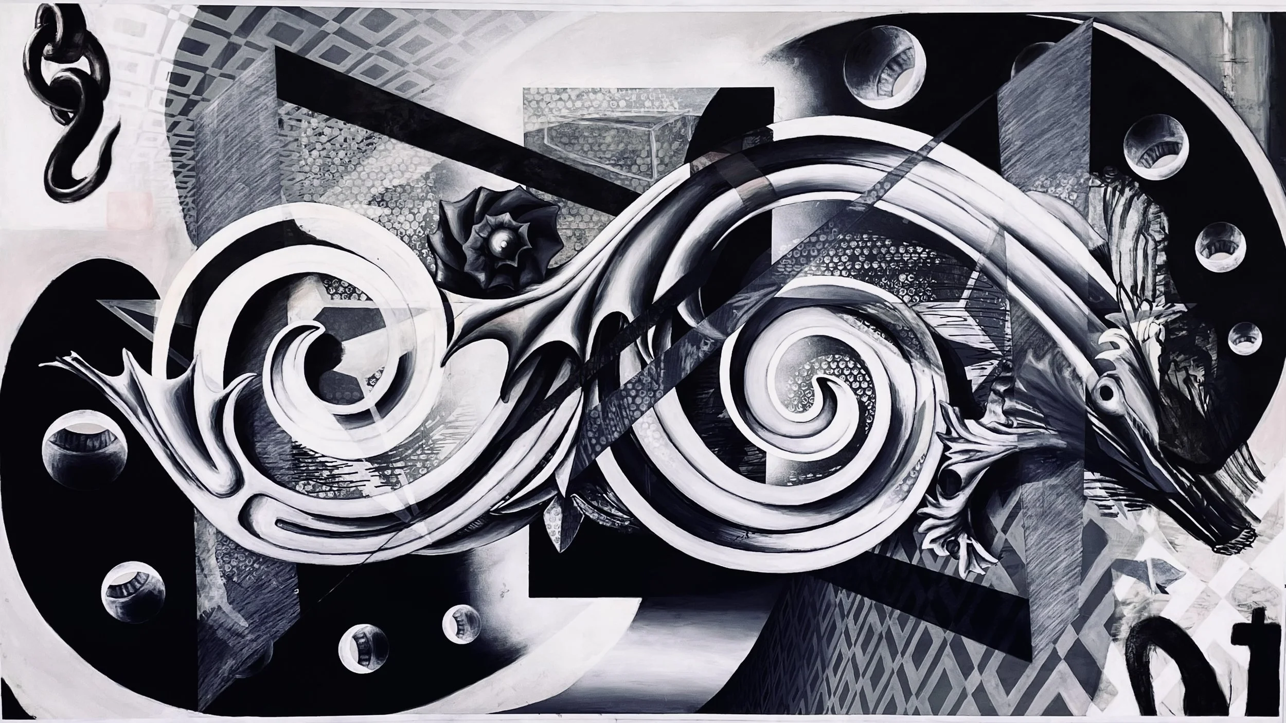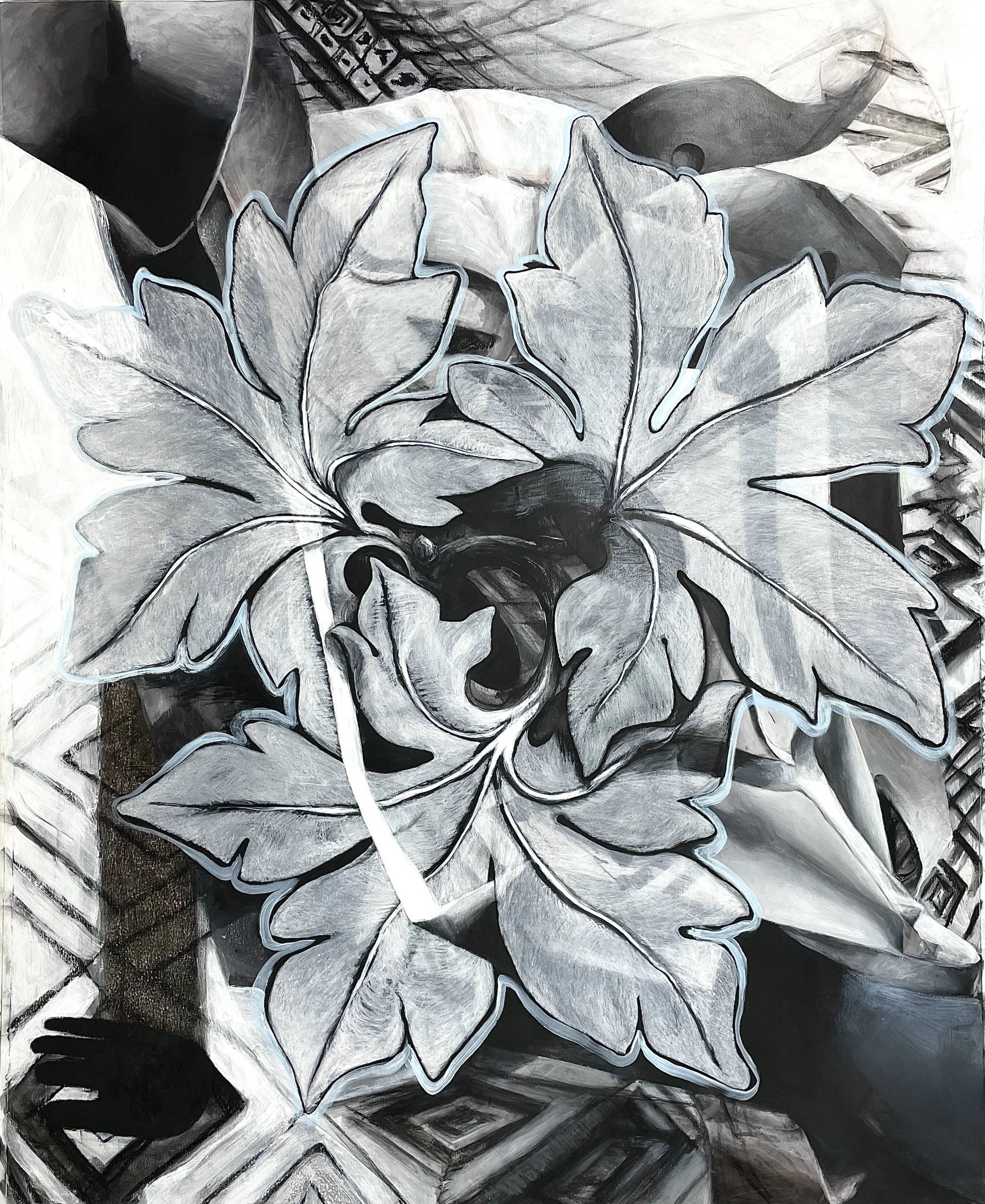 Nine Thresholds, 2024. Gesso, ink, charcoal on canvas - 42x78 in.